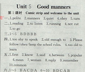 2017年高效精炼八年级下册英语【译林牛津版】Unit 5 Good manners 第1课时
